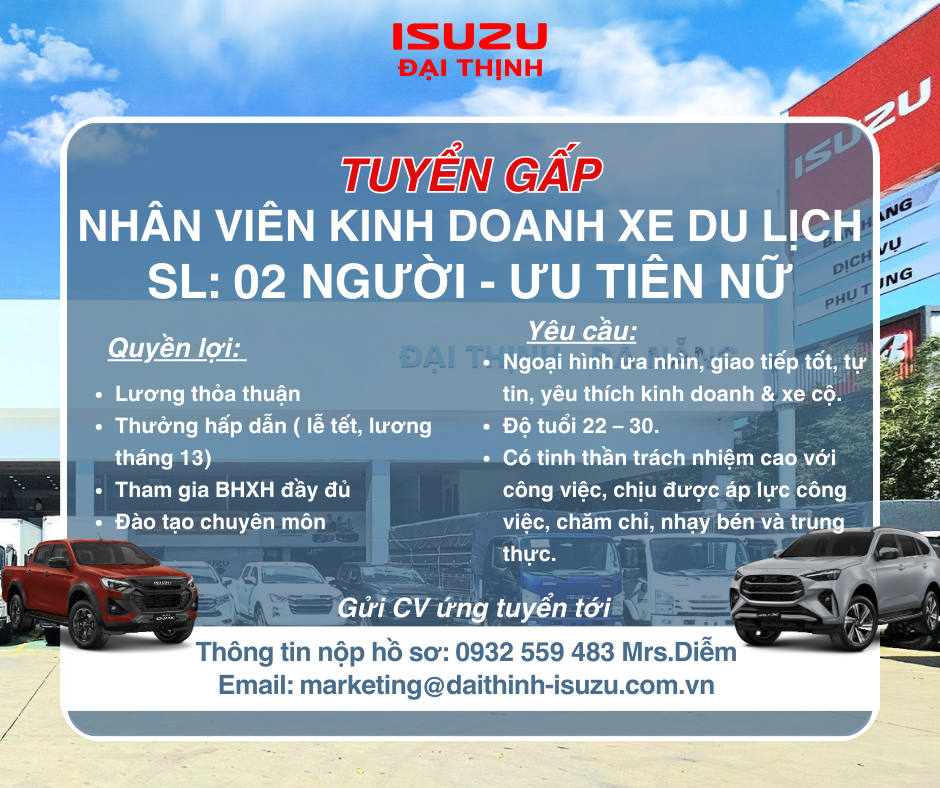 🏢ISUZU ĐẠI THỊNH TUYỂN DỤNG NHÂN SỰ GẤP